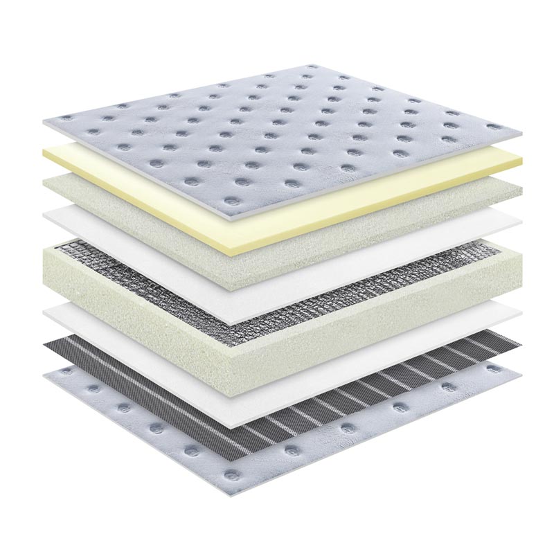 ঐতিহ্যবাহী মেমরি ফোম গদির বিপরীতে, এই গদি একটি উচ্চ-ঘনত্ব, উচ্চ-স্থিতিস্থাপক ফোম কাঠামো ব্যবহার করে যা